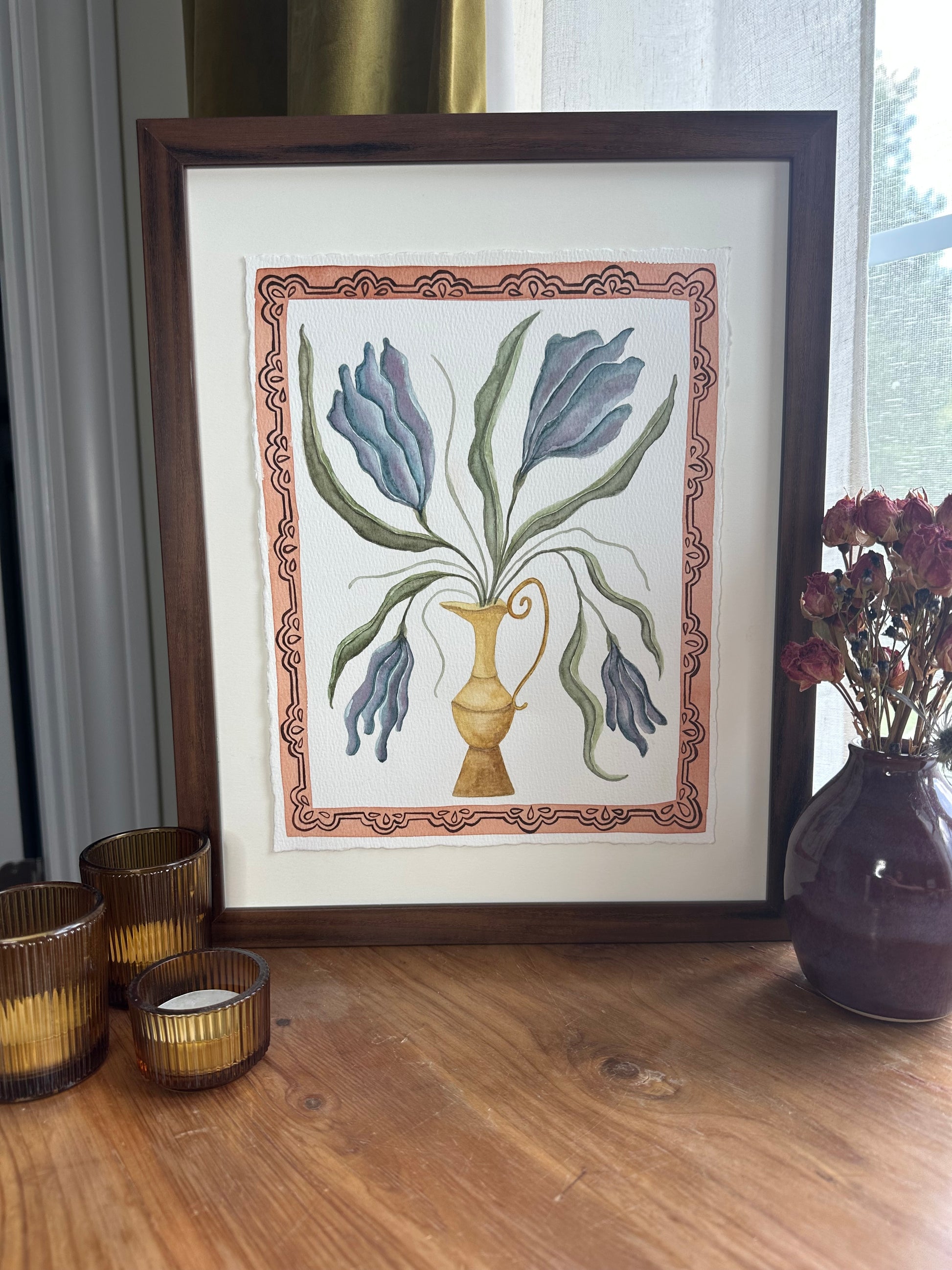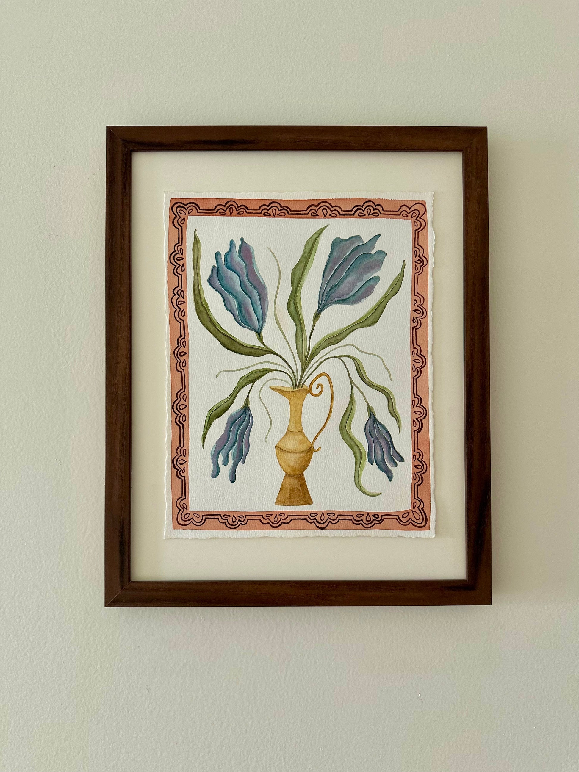 This 8x10" original watercolor is painted on ivory cotton paper with deckled edges.