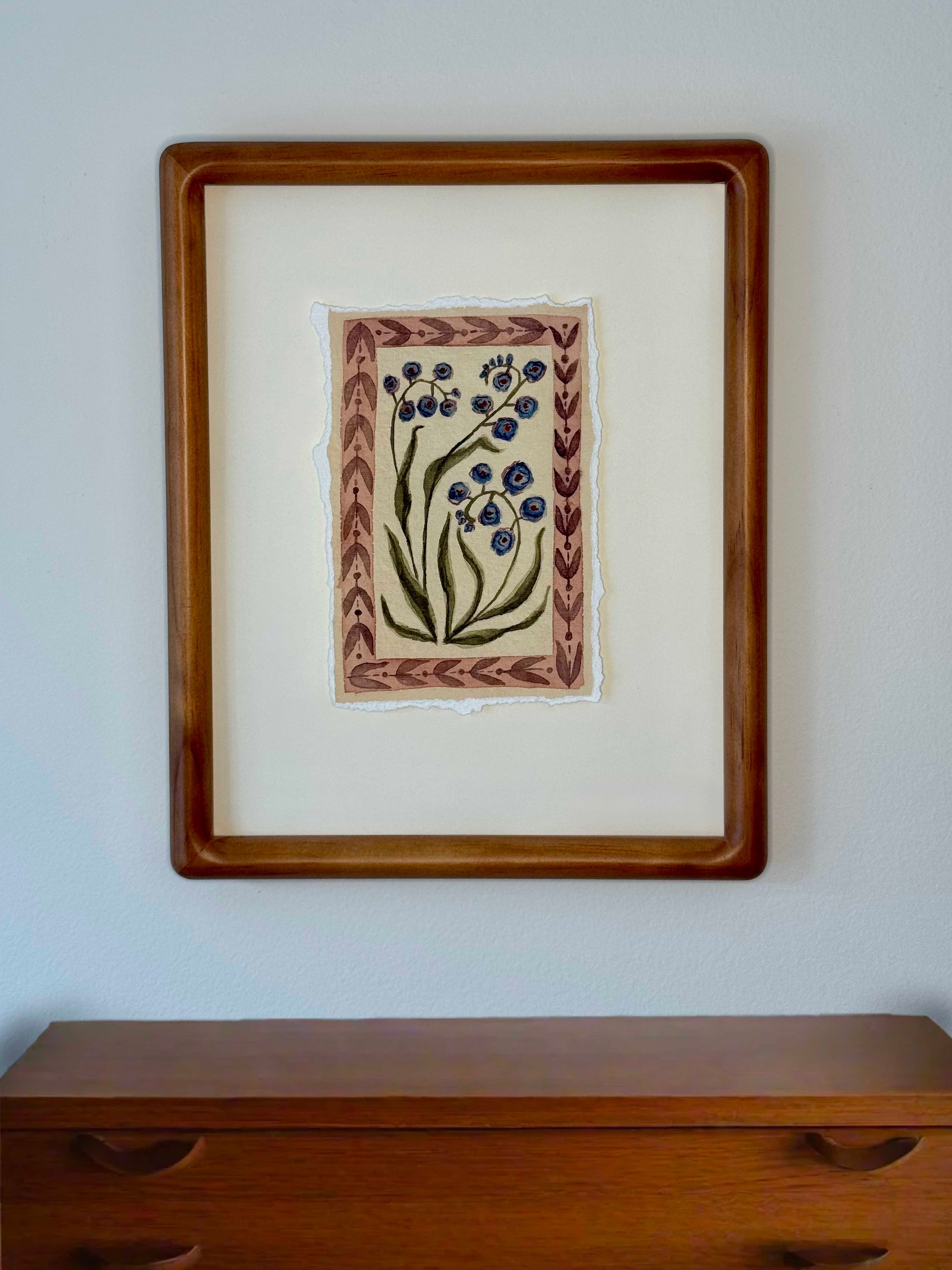 I Have Time, a mantra for when life feels too busy to enjoy, is a 4x6" gouache painting on cream-toned handmade paper with natural deckled edges.