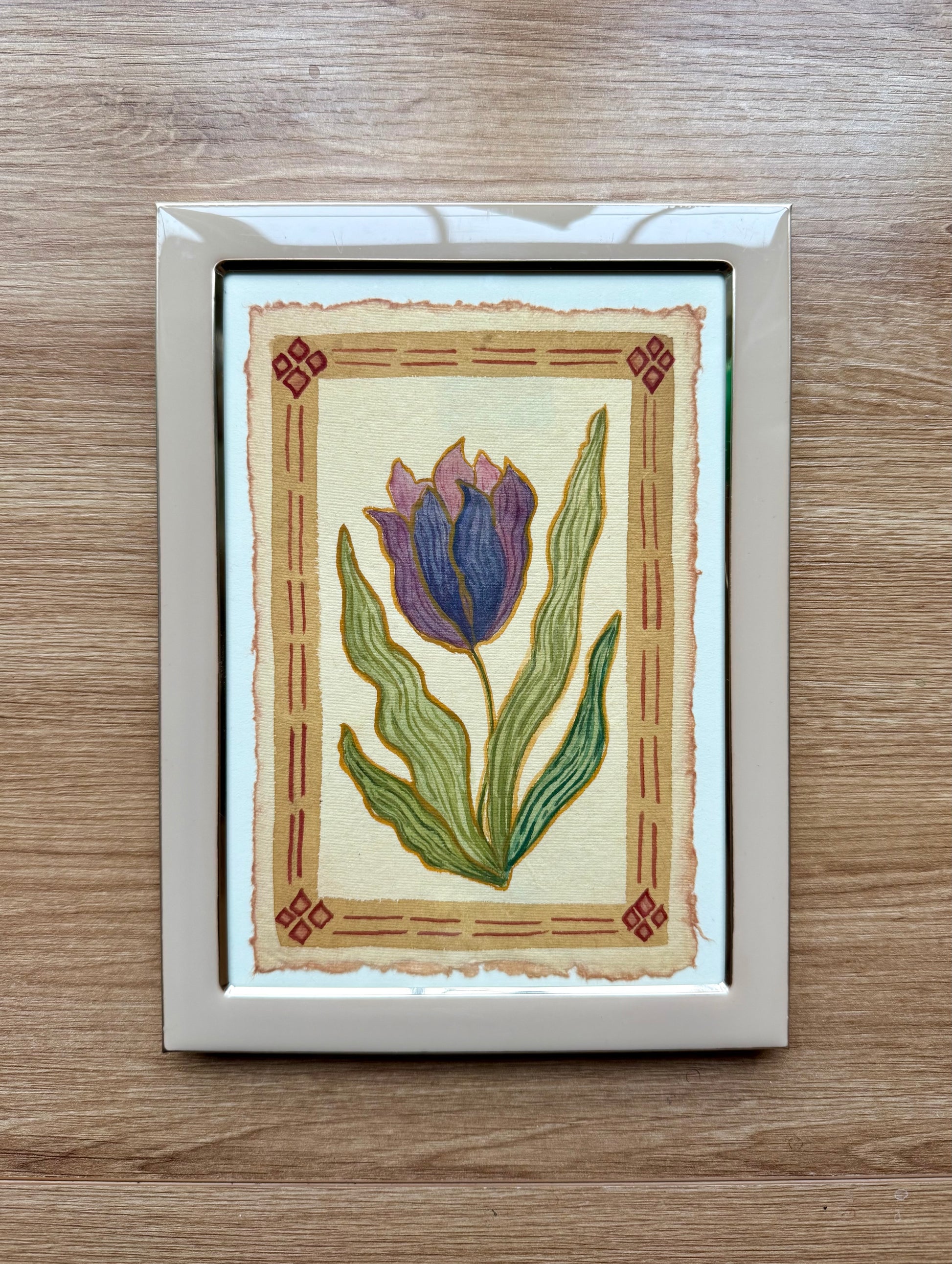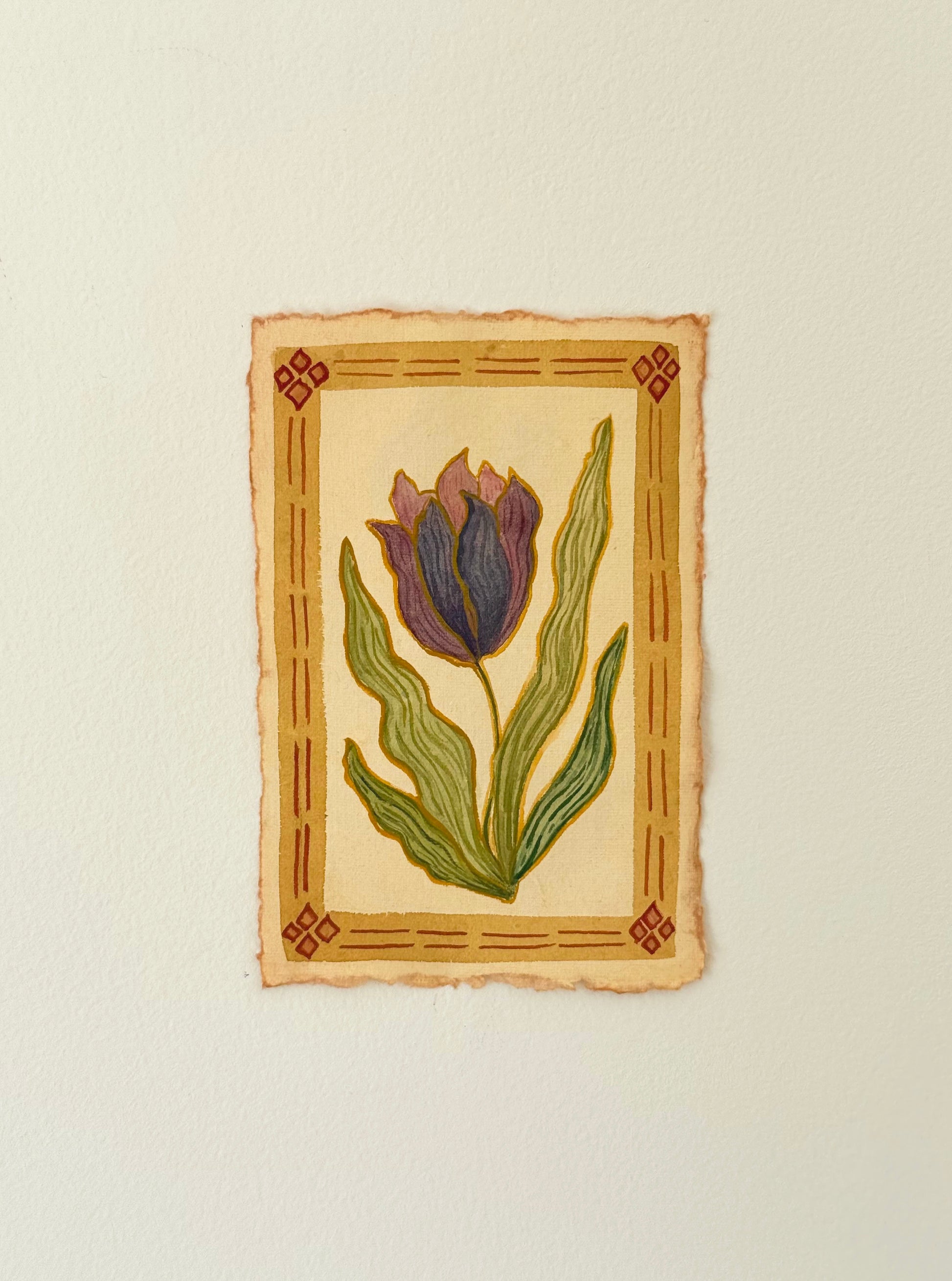 This 4×6" watercolor is painted on cream-colored handmade paper with natural deckled edges. I recommend displaying it in a 5×7" frame or larger to highlight the torn borders, centering the painting with a small piece of tape on the back.
