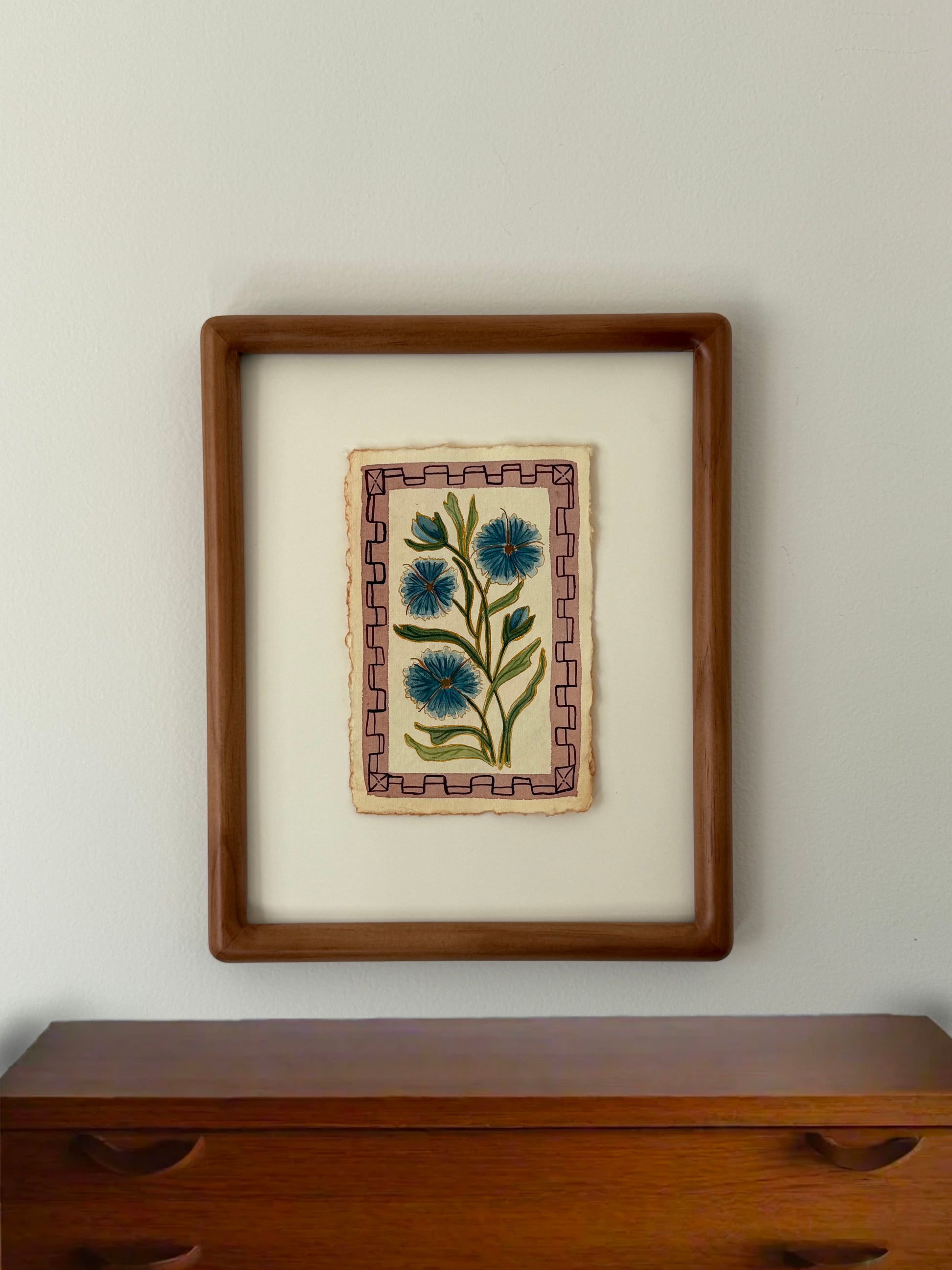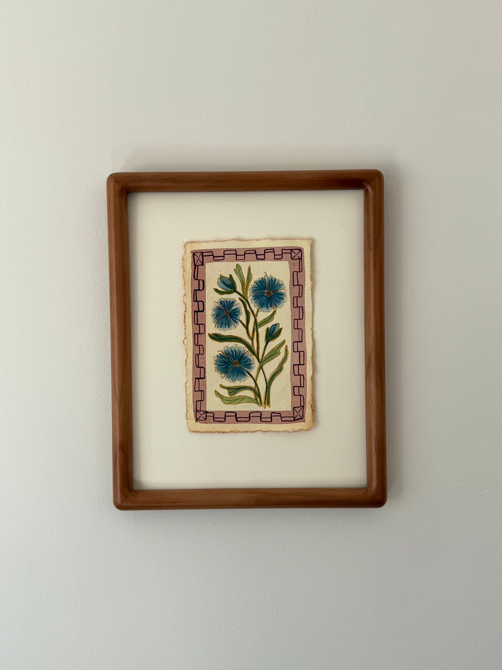 This 4×6" watercolor is painted on cream-colored handmade paper with natural deckled edges. I recommend displaying it in a 5×7" frame or larger to highlight the torn borders, centering the painting with a small piece of tape on the back.