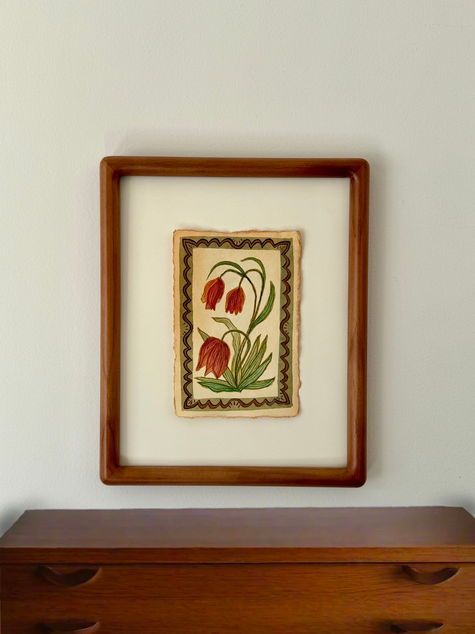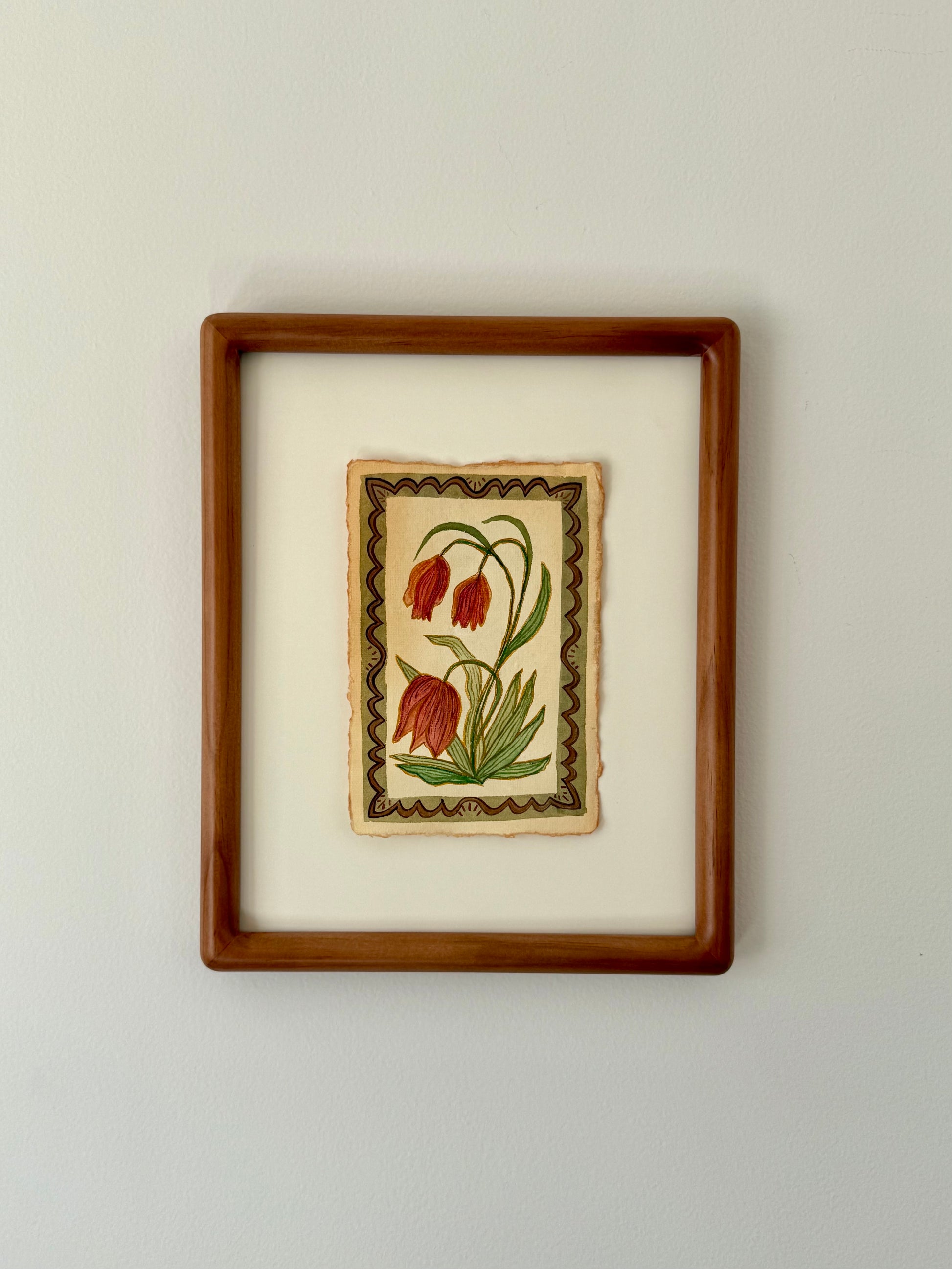 This 4×6" watercolor is painted on cream-colored handmade paper with natural deckled edges. I recommend displaying it in a 5×7" frame or larger to highlight the torn borders, centering the painting with a small piece of tape on the back.